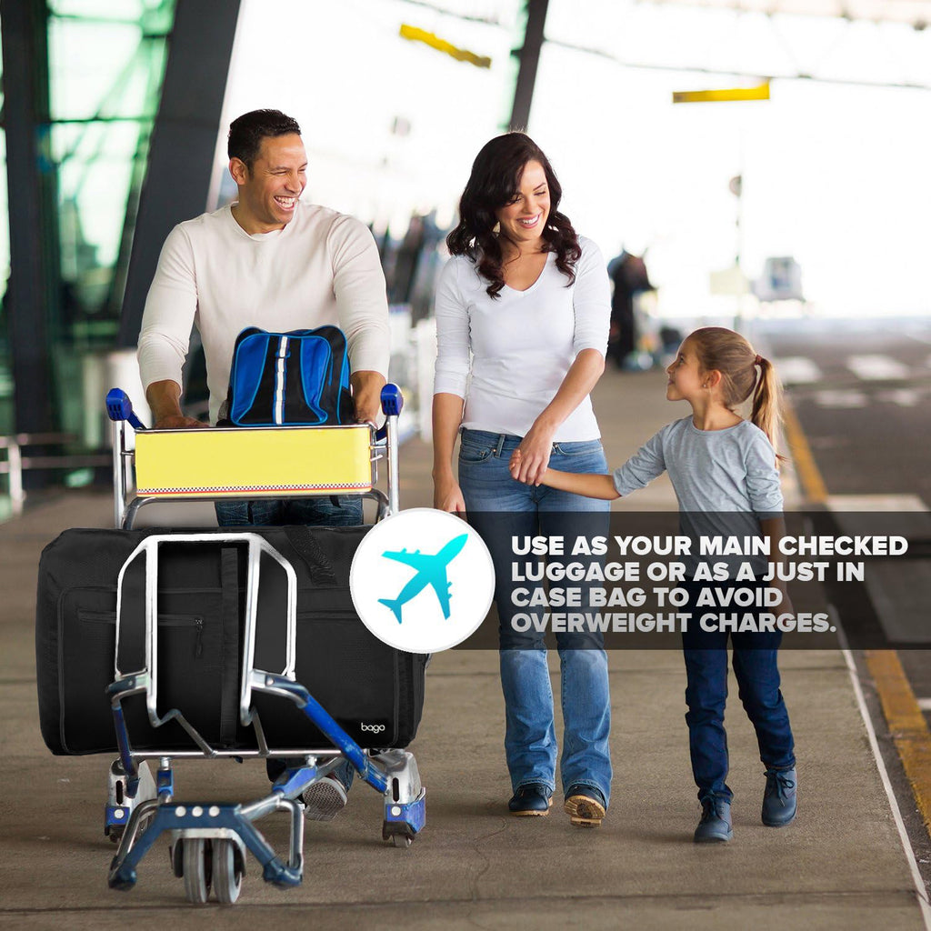 - A RELIABLE TRAVEL ESSENTIAL; Unfold at the airport to avoid excess baggage charges, to carry your gifts and souvenirs, or to transfer your things from your damaged suitcase. This is an airport saviour for any trip - always take one with you on any trip or travel.